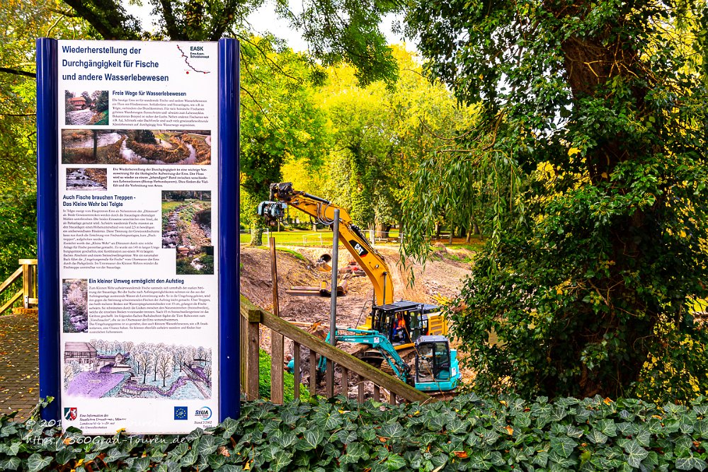 Sanierung und Wiederherstellung der Durchgängigkeit für Fische und andere Wasserlebewesen an der Ems in Telgte. Die bestehende Fischaufstiegsanlage, die das Unterwasser des Wehrs mit dem Oberwasser verbindet, wurde umfassend erneuert, um die ökologische Funktion sicherzustellen.