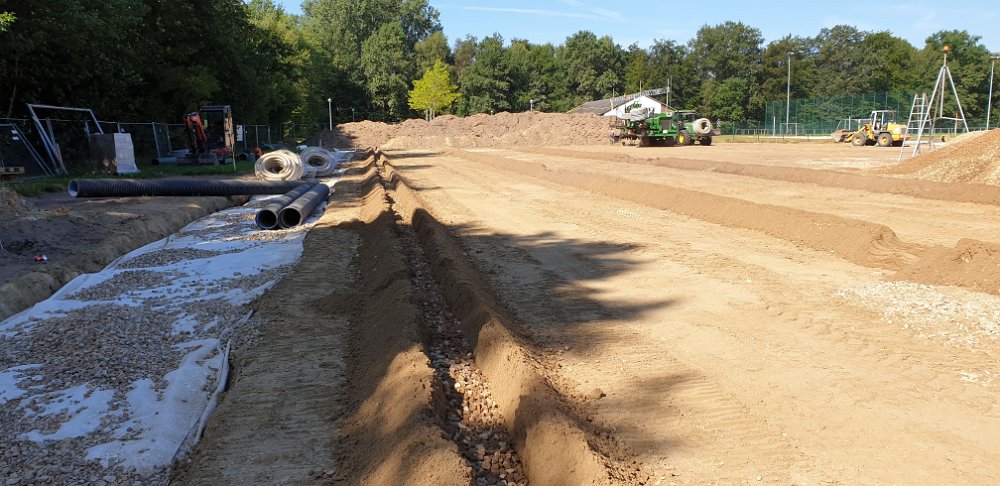Die Laser,- und GPS gestützte Herstellung der Sportflächen nach Richtlinien des Sportplatzbaus